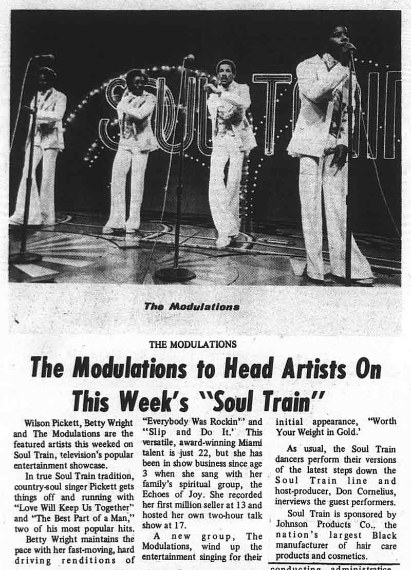 the Modulations were singing together by 1970 and consisted of Nick Allen, Jr., Larry Duncan, Henry Channelle, and Hoyal Saunders. After cutting a debut record for the Mozel label out of New York, the Modulations came under the management of local entrepreneur Henry Bates and landed a deal with national concern Buddah Records. The results were a string of singles and an album that achieved national success.